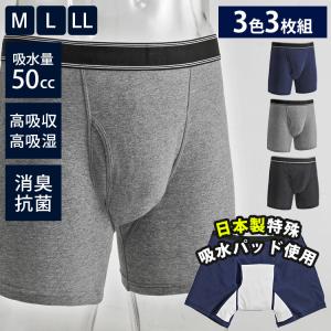 横漏れ防止 吸水パッド付 ボクサーパンツ 3枚組 M・L・LL