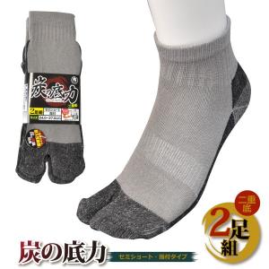 富士手袋工業 No.861 炭の底力 二重底ソックス 指付 2足組 セミショート 竹炭 メンズ 24.0-27.0cm 紳士 新生活 作業靴下 メール便対応
