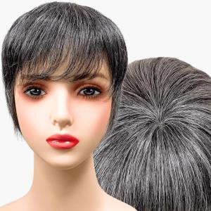 部分ウィッグ かつら ヘアピース ポイントウィッグ 白髪(白5黒5(人毛100%), グレイヘアーショート(前髪未カット&ベース大)