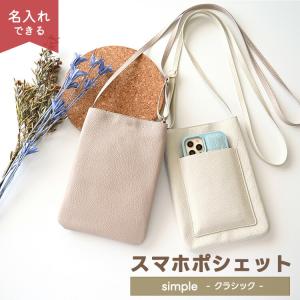 スマホポシェット simple クラシック 選択可能 名入れプレート有無 シンプル スマホショルダーバッグくすみカラー レディース メール便送料無料
