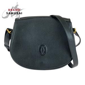 美品 CARTIER カルティエ マストライン ブラック 黒 ゴールド金具 レザー ショルダーバッグ ポシェット レディース 505050