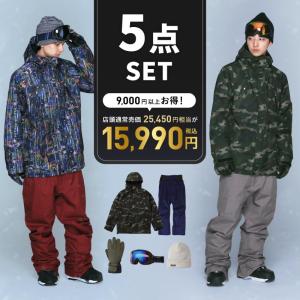 スノーボードウェア レンタルよりお得 5点セット メンズ スキーウェア スノボウェア 上下セット ゴーグル グローブ ニット帽 PSET-2324 [福袋 返品不可]