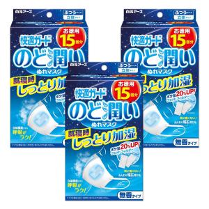 3個セット 白元アース 快適ガード のど潤いぬれマスク 無香タイプ ふつうサイズ 15セット入