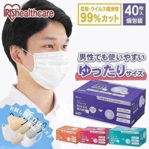 [立体マスクおまけ付き]マスク 不織布 個包装 アイリスオーヤマ 不織布マスク 花粉 小さめ 学童 子供用 ふつう 大きめ 120枚 40枚入 3個セット PK−NV40