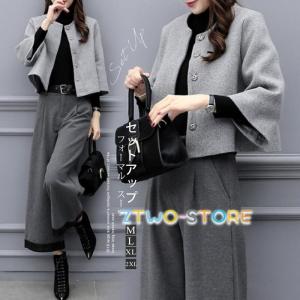 パンツセットアップ ワイドパンツ レディース 秋冬 パンツ ガウチョパンツ コート アウター 通勤 入学式 卒業式 フォーマル ママ 30代 40代 大きいサイズ
