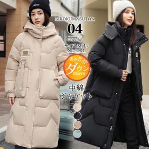 中綿コート レディース ロングコート ロング丈 ベンチコート フード付き ダウンジャケット アウター シンプル 防寒 厚手 あったか 通勤 通学