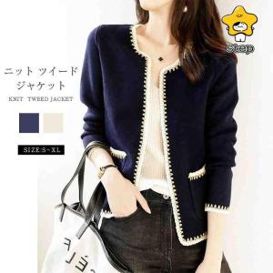 ノーカラーツイードジャケット 春 ツイード ジャケット ノーカラー レディース フォーマル オフィス 通勤 韓国ファッション