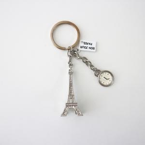 paris おみやげ エッフェル塔 時計モチーフ 懐中時計 BON JOURキーホルダー キーリング ラインストーン クリア パリ フランス la tour eiffel