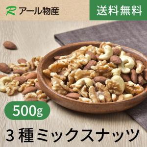 3種ミックスナッツ【添加物不使用・食塩不使用】500g【送料無料】 アーモンド クルミ カシューナッツ チャック付き(アール物産)