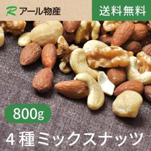 4種ミックスナッツ【添加物不使用・食塩不使用】800g【送料無料】 アーモンド クルミ カシューナッツ マカデミアナッツ チャック付き(アール物産)