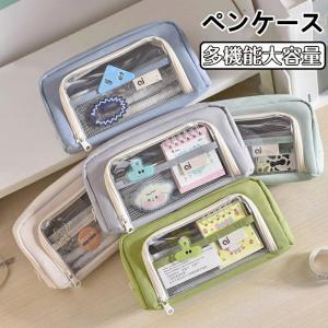 クリアポケット付き 透明 筆入れ シンプル 韓国 自立型 クリアペンケース 大容量 かわいい 大容量 高校生女子 オシャレ 大学生 中学生 プレゼント 新学期 筆箱