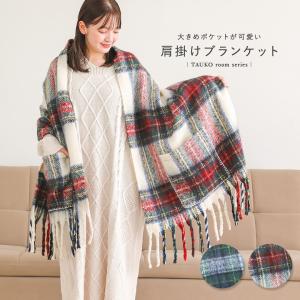 ブランケット 肩掛け ひざ掛け レディース ライフスタイル雑貨 あったか 暖かい 大判 起毛 タータンチェック 防寒 ポケット 秋 冬「メール便不可」「60」