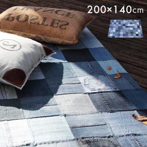 ラグ 1.5畳 ラグマット デニム ジーンズ マット カーペット パッチワーク ヴィンテージ インダストリアル コットン 綿 アメリカン おしゃれ シンプル クッション