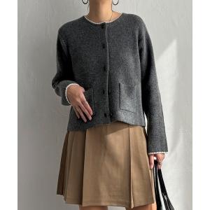 カーディガン 配色ポケットショートカーディガン レディース