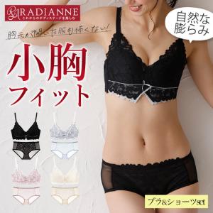 小胸 フィット ズレない カップ浮き防止 ポジティブバストブラ すみれレース ブラ&ショーツセット 育乳 美胸 やせ型 ラディアンヌ