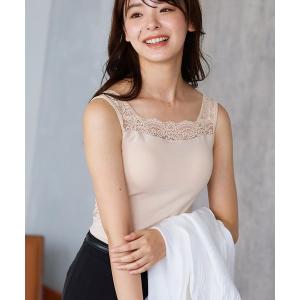 タンクトップ ノースリーブ 「肉感拾わない着圧設計」オールインワンブラトップ レース切り替えタンク/「タンクトップ」 レディース