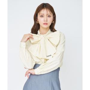 ブラウス シャツ バタフライリボンストライプブラウス レディース