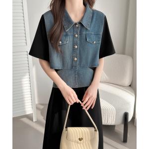 ワンピース バックリボンデニムドッキングワンピース