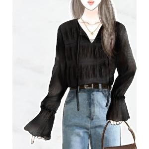 ブラウス シャツ 入園式 卒園式 涼やかに、品よく、愛らしく。前後2wayリボンキャンディスリーブシアープリーツブラウス(長袖) レディース