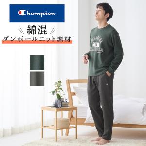チャンピオン メンズ 綿 ルームウェア ダンボールニット 冬 長袖 長パンツ 男性 グンゼ M〜LL OM8514