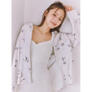 パジャマ ルームウェア リブフリースプリント開襟シャツ レディース