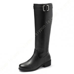 ロングブーツ 本革 ジョッキーブーツ スクエア靴 キレイめ ローヒール サイドジッパー 上品 コーディネート 履きやすい サイドジッパー サイドベルト 美脚