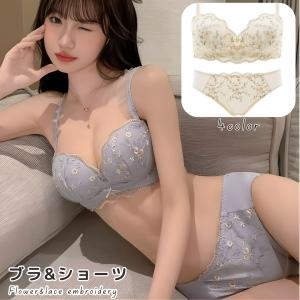 ブラジャー ショーツ セット レディース 花柄 刺しゅう 上下セット 4セット組 E70:M〜F80:LL E70_M〜F80_LL ニッセン nissen