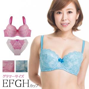 SALE セール ブラジャーショーツセット グラマーサイズ 大きいサイズ 大きなサイズ レース Eカップ ピンク ブルー 青 下着 通販 レディース 女性 ノイ 30代 40代