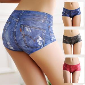 ショーツ レディース デニム風 パンツ 下着 ショーツ 下着レディース ひびかない シームレスショーツ ノーライン ショーツ ヒップハング ボクサーパンツ T-1630