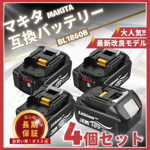 マキタ 互換 18V バッテリー BL1860B 互換 4個セット 6.0Ah マキタバッテリー 18V 残量表示 最新 長寿命 セル 高性能 保護回路 PL保険 長期保証 (BL1860B/4個)
