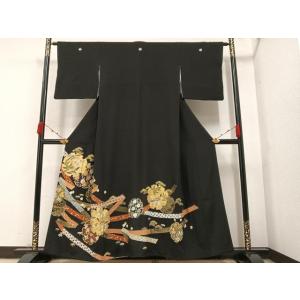 平和屋着物●創業460年・千總 黒留袖 駒刺繍 雪輪飛鶴草花文 宝尽くし 金彩 伊勢丹扱い 正絹 逸品 AAAY8993ph