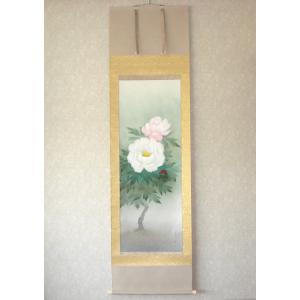 掛け軸 掛軸 富貴花(ふきか) 牡丹(ぼたん) 中川幸彦 (真筆・中古) 太巻・共箱・タトウ箱付