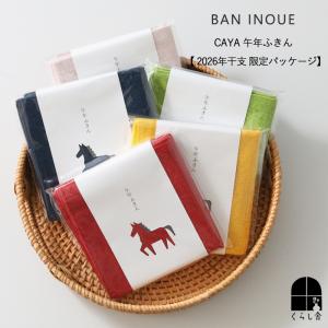 限定パッケージ BAN INOUE 午年ふきん 2026年 令和8年 かや棉ふきん 正方形 吸水 速乾 キッチンクロス おしゃれ 日本製 お年賀 年始 ギフト お正月 干支