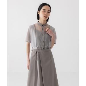 ブラウス シャツ BackSatinAmunzen バンドカラーブラウス レディース