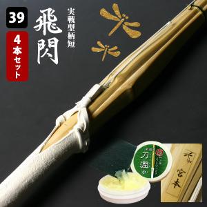 【SSPシール付・安心交換保証付】 4本セット 剣道 竹刀 「飛閃」 実戦型胴張柄短・真竹吟風W仕組み完成竹刀 39サイズ (大学 一般 大人)