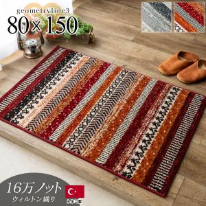おしゃれ カーペット ボーダー柄 ラグ 80×150cm エスニック 調 トルコ じゅうたん 高弾力! ラグマット