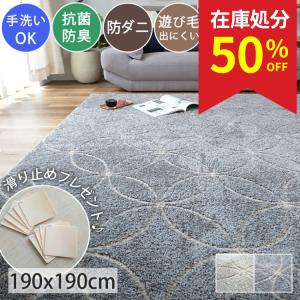 在庫処分 特価 ラグ カーペット 洗える 2畳 190×190cm 絨毯 北欧 おしゃれ ラグマット 柄 幾何学 じゅうたん シャギーラグ / カレイル