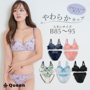 ブラショーツセット 大きいサイズ レディース 婦人下着 上下セット 刺繍 レース パッド付き ゆったり B85 B90 B95 Queen