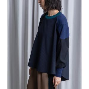 ブラウス シャツ ストライプコンビネーションプルオーバー レディース