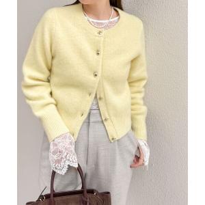 カーディガン ヘアリーメタル釦クルーネックカーディガン レディース