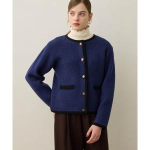 カーディガン ノーカラーニットジャケット「洗える」 レディース