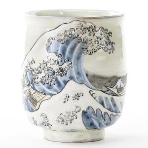 京焼:花月窯【富士 浪裏 湯呑】葛飾北斎 富嶽三十六景 神奈川沖波裏 絵柄◆陶器 湯飲み 茶碗 日本製