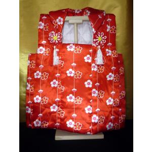雛まつり用品☆ひなまつり用被布着(ひふぎ)赤梅柄 白木飾り台付☆1歳くらいのお子様が着られるサイズ(幅約38cmx高さ約45cm)