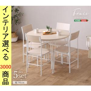 ダイニングテーブル+チェア 直径90×70cm 円形 4脚 ホワイトオーク色 YHCRF5