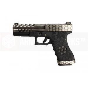 【年末年始BIG SALE】ArmorerWorks Custom AW-VX0100 Hex-Cut ガスブローバックガン シルバースライド / ブラックフレーム