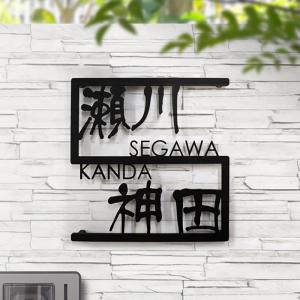 表札 二世帯 アイアン 漢字 おしゃれ ステンレス 戸建て 切り文字 黒 lcsj-02-2