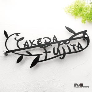 表札 おしゃれ 戸建て ステンレス アイアン リーフ二世帯用