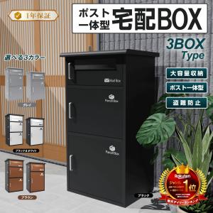 宅配ボックス 宅配BOX ブラック 三段式 ポスト一体型 屋外 防水 大容量 置き配ボックス 戸建て用 個人宅用 収納ボックス 郵便受け 盗難防止 新タイプ