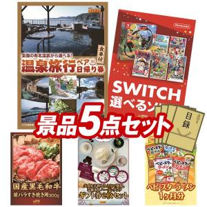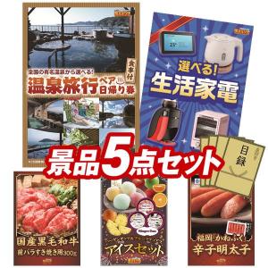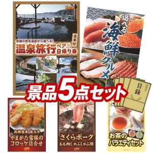 ビンゴ 景品セット 5点 結婚式二次会 ゴルフコンペ イベント パーティーにも最適!目玉は選べるペア日帰り入浴+食事付きプラン!忘年会の景品に!