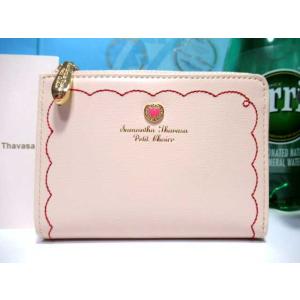 送料無料 サマンサタバサ ロゴ入 ハート ビジュー 牛革 ミニ財布 マルチケース コインケース 小銭入 カード入 パスケース ピンク 新品 証明書付 ギフト包装無料